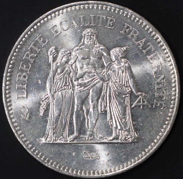 La pièce d'argent de 50 Francs Hercule est l'une des monnaies françaises les plus emblématiques et reconnaissables du XXe siècle. Créée par le célèbre graveur Augustin Dupré à la fin du XVIIIe siècle, le groupe Hercule a été réintroduit et popularisé sur les grandes pièces en argent de la Cinquième République, notamment entre 1974 et 1980.